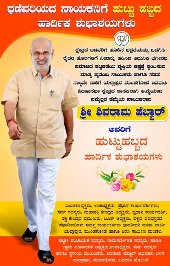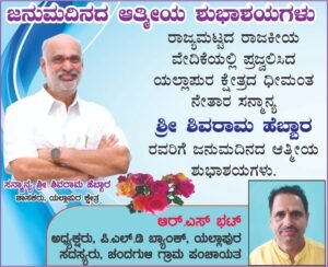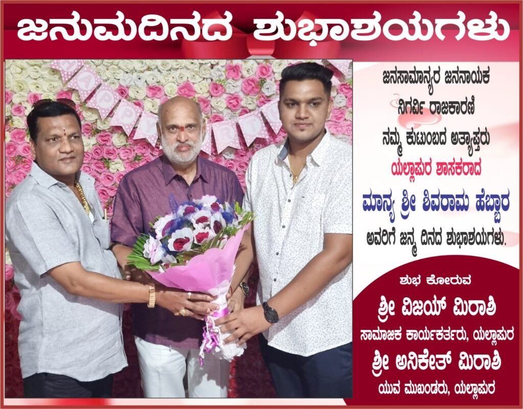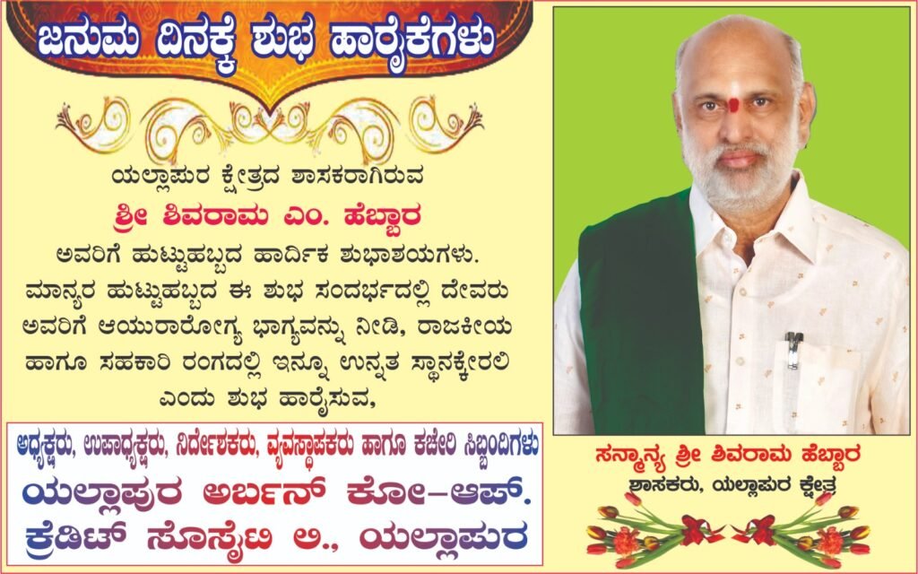 ಇಂದು ಶಾಸಕ ಶಿವರಾಮ ಹೆಬ್ಬಾರ್ ಅವರ ಜನ್ಮದಿನ ಸಂಭ್ರಮ ಅದು ಕೇವಲ ಅವರ ಕುಟುಂಬಕ್ಕಾಗಲಿ, ಯಲ್ಲಾಪುರ ತಾಲೂಕಿಗಾಗಲಿ ಮಾತ್ರವಲ್ಲ ಬದಲಾಗಿ ಯಲ್ಲಾಪುರ ವಿಧಾನಸಭಾ ಕ್ಷೇತ್ರ ವ್ಯಾಪ್ತಿಯಲ್ಲಿ ಸಡಗರ ಸಂಭ್ರಮದಲ್ಲಿ ಆಚರಿಸುತ್ತಾರೆ ಕಾರಣ ಹೆಬ್ಬಾರ್ ಕ್ಷೇತ್ರದ ಮನೆಯ ಮಗನಾಗಿ ಗುರುತಿಸಿಕೊಂಡಿದ್ದಾರೆ ಅದರಲ್ಲು ಬಡ ಮದ್ಯಮವರ್ಗದ ನೆಚ್ಚಿನ ನೇತಾರರಾಗಿದ್ದಾರೆ.