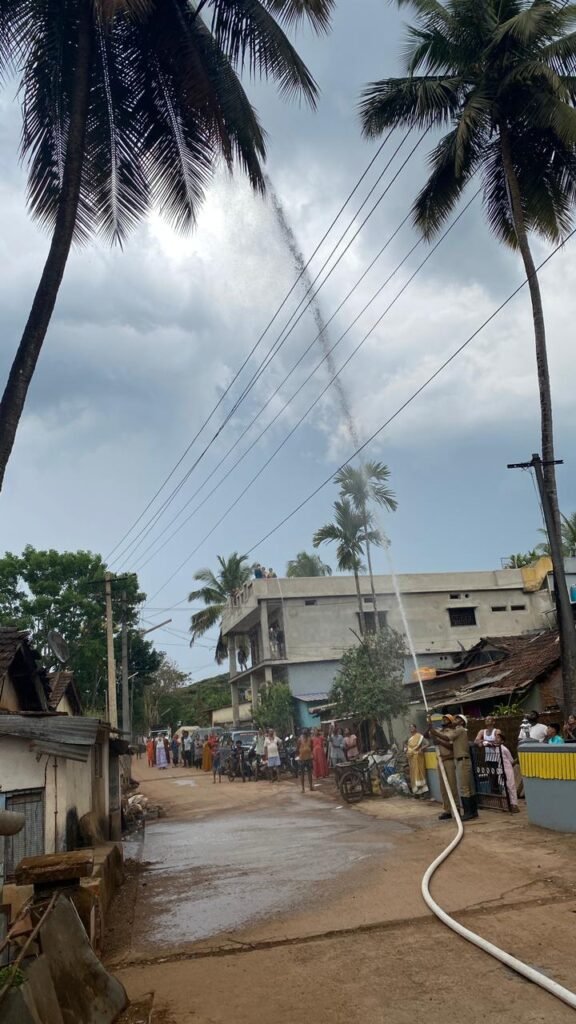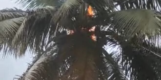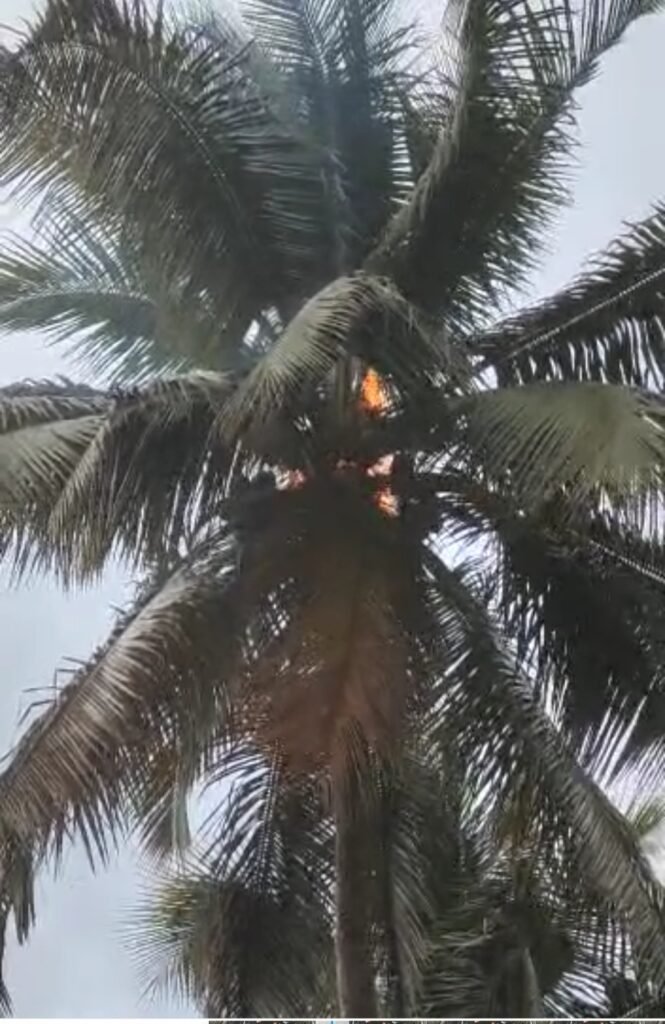 ಯಲ್ಲಾಪುರದಲ್ಲಿ ಸಿಡಿಲು ಬಡಿದು ತೆಂಗಿನಮರಕ್ಜೆ ಬೆಂಕಿ ತಕ್ಷಣ ನಂದಿಸಿದ ಅಗ್ನಿಶಾಮಕ ದಳ