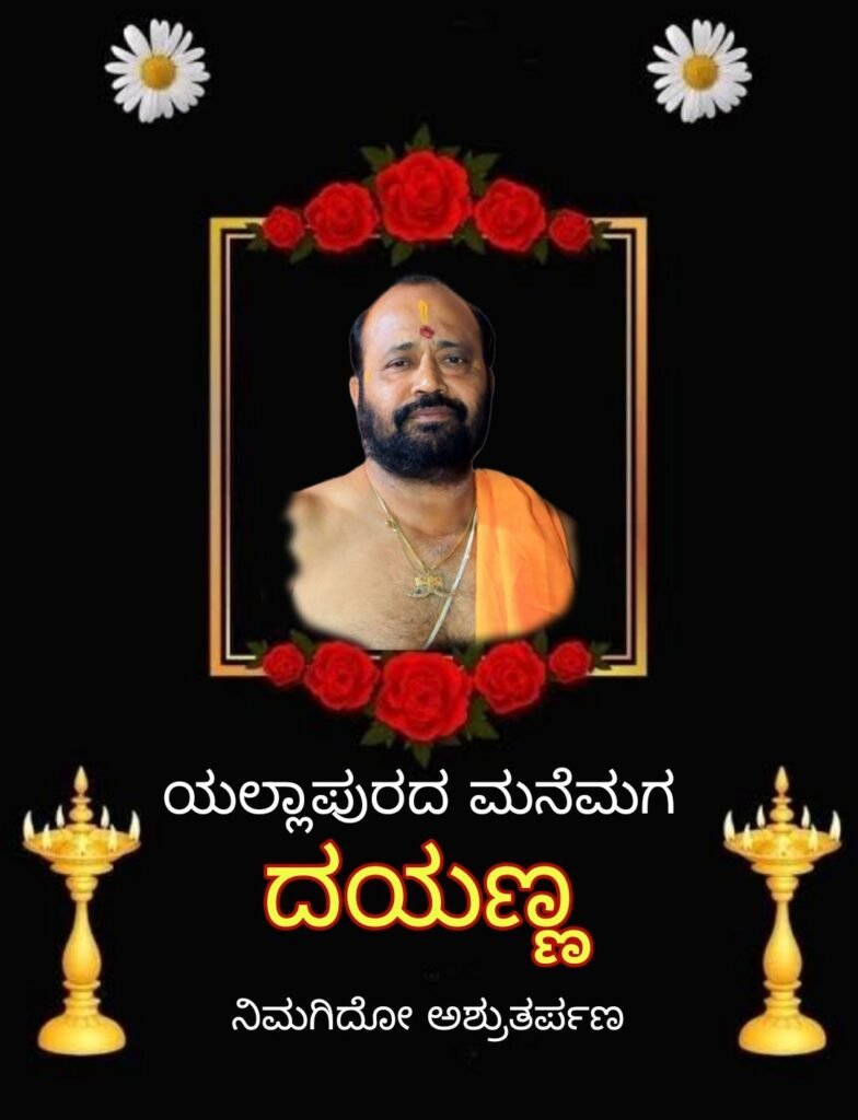 ಊರಿನ ಧಾರ್ಮಿಕ ಕಾರ್ಯಗಳಲ್ಲಿ ಮಿಂಚುತ್ತಿದ್ದ ದೃವ ನಕ್ಷತ್ರ ಮರೆಯಾಗಿದೆ. – ಪಟ್ಟಣದಲ್ಲಿರುವ ಯಾವುದೇ ದೇವಾಲಯಗಳಲ್ಲಿ ಧಾರ್ಮಿಕ ಆಚರಣೆಗಳು ನಡೆದಾಗ ಕೈಲಾದ ಸೇವೆ ಸಲ್ಲಿಸುವುದರ ಜೊತೆಗೆ ಅನ್ನ ದಾಸೋಹದಂತಹ ಪವಿತ್ರ ಕಾರ್ಯಗಳಲ್ಲಿ ಕೆಲಸ ಕಾರ್ಯಗಳನ್ನೆಲ್ಲಾ ಹೆಗಲ ಮೇಲೆ ಹೊತ್ತು ಹಗಲು-ರಾತ್ರಿ ಎನ್ನದೇ ಶ್ರಮಿಸುತ್ತಿದ್ದರು. ಅದರೊಂದಿಗೆ ಇಂತಹ ಕಾರ್ಯಗಳಿಗೆ ಯುವಕರಲ್ಲಿ ಹೊಸ ಉತ್ಸಾಹವನ್ನು ತುಂಬುತ್ತಿದ್ದರು. ಭವಿಷ್ಯದ ಪೀಳಿಗೆಗೆ ಧರ್ಮ ಕಾರ್ಯ, ದೇಶ ಭಕ್ತಿ ಮತ್ತು ಸಾಮರಸ್ಯ ಜೀವನದ ಕುರಿತು ಸ್ವಯಃ ಕಥೆಯಾಗಿಯೇ ಉದಾಹರಣೆಯಾಗುತ್ತಿದ್ದರು. ಧಾರ್ಮಿಕ ಕಾರ್ಯಗಳಲ್ಲಿ ಸದಾ ಹೊಳೆಯುತ್ತಿದ್ದ ದೃವ ನಕ್ಷತ್ರವೊಂದು ಯಲ್ಲಾಪುರ ಮಣ್ಣಿನಿಂದ ಕಣ್ಮರೆಯಾಗಿರುವುದು ಅತೀವ ದುಃಖ ತಂದಿದೆ.]