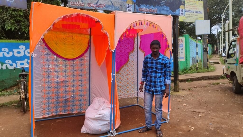 ಹಳಿಯಾಳ ಮೂಲದ ಪ್ರಶಾಂತ ಎಂಬಾತ ಧಾರವಾಡದಲ್ಲಿ ಪೂಜಾ ಮಂಟಪಗಳ ಬಾಡಿಗೆ ನೀಡುವ, ಮಾರಾಟ ಮಾಡುವವನಾಗಿದ್ದು ಕಳೆದ ಮೂರು ವರ್ಷಗಳಿಂದ ಪೂಜಾ ಕಾರ್ಯಗಳಿಗೆ ಬಟ್ಟೆಯಲ್ಲಿ ಸಿದ್ಧಪಡಿಸಿದ ಅಲಂಕಾರಿಕ ಮಂಟಪ ಮಾರುತ್ತಿದ್ದಾನೆ. ಇದೇ ಮೊದಲ ಬಾರಿಗೆ ಯಲ್ಲಾಪುರ ಮಾರುಕಟ್ಟೆಗೆ ಬಂದಿದ್ದು ಜನರಿಗೆ ಇದರ ವಿಶೇಷತೆ ಹೇಳುವುದರಲ್ಲೇ ದಿನಕಳೆದಂತಾಗಿದೆ. ಇನ್ನು ಮುಂದಷ್ಟೇ ಮಾರಾಟ ಶುರುವಾಗಬೇಕಿದೆ ಎನ್ನುತ್ತಾನೆ ಪ್ರಶಾಂತ.