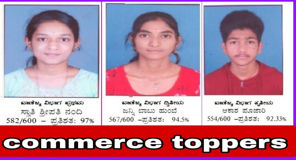 ವಾಣಿಜ್ಯ ವಿಭಾಗದ ಸ್ವಾತಿ ನಂದಿ 582 ಪ್ರಥಮ, ಜನ್ನಿ ಹುಂಬೆ 567 ದ್ವಿತೀಯ , ಆಕಾಶ ಪೂಜಾರಿ 554 ತೃತೀಯ ಸ್ಥಾನ ಪಡೆದಿದ್ದಾರೆ .