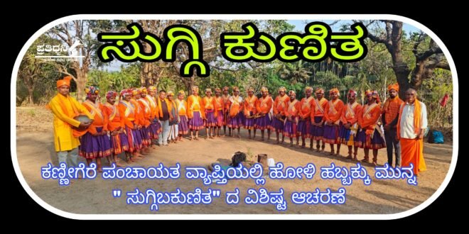 ಯಲ್ಲಾಪುರ : ಪೂರ್ವಜರ ಕಾಲದಿಂದಲು ಹೋಳಿ ಹಬ್ಬಕ್ಕು ಮುನ್ನ ಸುಗ್ಗಿ ಕುಣಿತ ನೆರವೇರಿಸುತ್ತಾ ಬಂದಿದ್ದು ಸ್ಥಳೀಯ ದೇವತೆಗಳ ಅಪ್ಪಣೆ ಪಡೆದು ರಣಗಳನ್ನು ಎಬ್ಬಿಸಿ ಸುಗ್ಗಿ ಕುಣಿತ ಆಯೋಜಿಸಲಾಗುತ್ತದೆ ಅದರಂತೆ ಕಣ್ಣೀಗೆರೆ ಪಂಚಾಯತ ವ್ಯಾಪ್ತಿಯಲ್ಲಿ ಕಳೆದೆರಡು ದಿನಗಳಿಂದ ಸುಗ್ಗಿ ಕುಣಿತ ಸದ್ದು ಮಾಡುತ್ತಿದೆ.