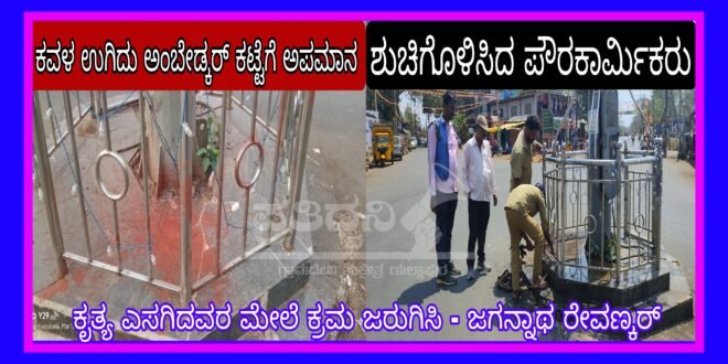 ಇದಕ್ಕೆ ಸ್ಪಂದಿಸಿದ ಪಟ್ಟಣ ಪಂಚಾಯತ ತಕ್ಷಣಕ್ಕೆ ಅಂಬೇಡ್ಕರ್ ಕಟ್ಟೆ ತೊಳೆದು ಶುಚಿಗೊಳಿಸಿದ್ದಾರೆ.