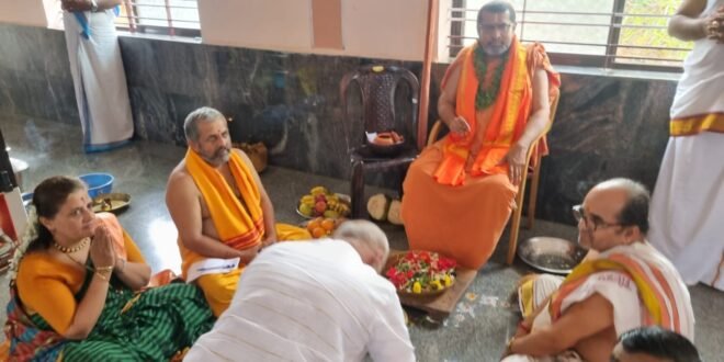 ಅವರು ಪಟ್ಟಣದ ಶ್ರೀ ಶಕ್ತಿ ಗಣಪತಿ ದೇವಸ್ಥಾನದಲ್ಲಿ ತಮಗಿತ್ತ ಪಾದಪೂಜೆ ಸ್ವೀಕರಿಸಿ, ಆಶೀರ್ವಚನ ನೀಡುತ್ತಿದ್ದರು.