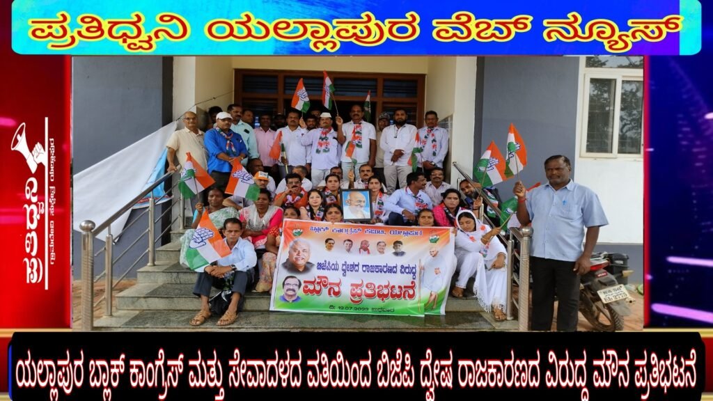 ಪ್ರತಿಧ್ವನಿ,ಯಲ್ಲಾಪುರ : ಪಟ್ಟಣದಲ್ಲಿ ಯಲ್ಲಾಪುರ ಬ್ಲಾಕ್ ಕಾಂಗ್ರೆಸ್ ಹಾಗು ಕಾಂಗ್ರೆಸ್ ಸೇವಾದಳದ ವತಿಯಿಂದ ಬಿಜೆಪಿ ಯ ದ್ವೇಷದ ರಾಜಕಾರಣದ ವಿರುದ್ದ ಮೌನ ಪ್ರತಿಭಟನೆ ಮಾಡಲಾಯಿತು.