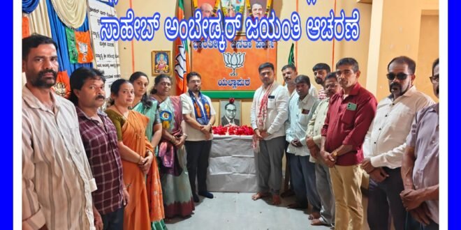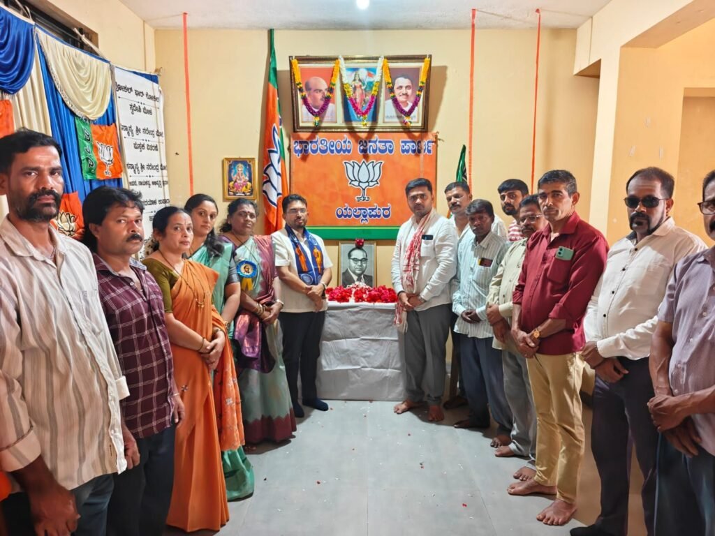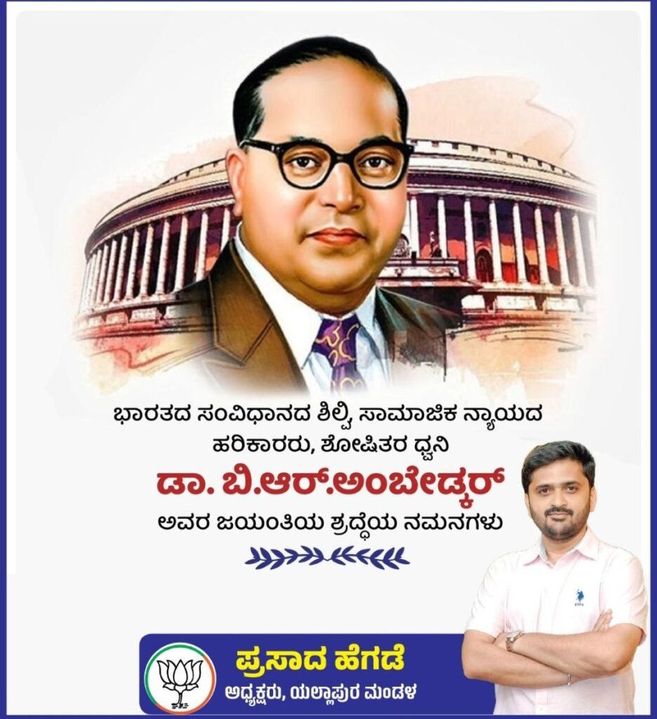 ಪ್ರತಿಧ್ವನಿ ಯಲ್ಲಾಪುರ: ಭಾರತದ ಸಂವಿಧಾನ ಶಿಲ್ಪಿ,ಸಾಮಾಜಿಕ ನ್ಯಾಯದ ಹರಿಕಾರರು,ಶೋಷಿತರ ದ್ವನಿ ಡಾ.ಬಿ.ಆರ್.ಅಂಬೇಡ್ಕರ್ ಅವರ ಜಯಂತಿ ನಿಮಿತ್ತ ಭಾರತೀಯ ಜನತಾ ಪಾರ್ಟಿ ಯಲ್ಲಾಪುರ ಮಂಡಳ ಕಾರ್ಯಲಯ ದಲ್ಲಿ ಶ್ರದ್ದೆಯ ನಮನಗಳನ್ನು ಸಲ್ಲಿಸಿ ಪುಷ್ಪ ನಮನ ,ಸಂಸ್ಮರಣೆ ಮಾಡಲಾಯಿತು.