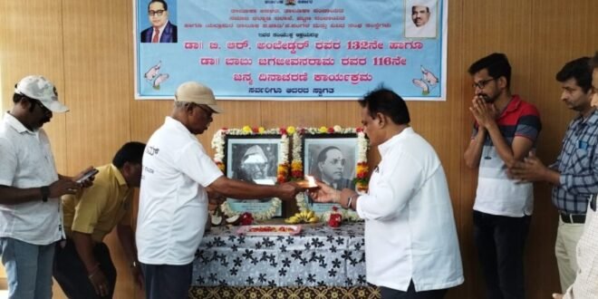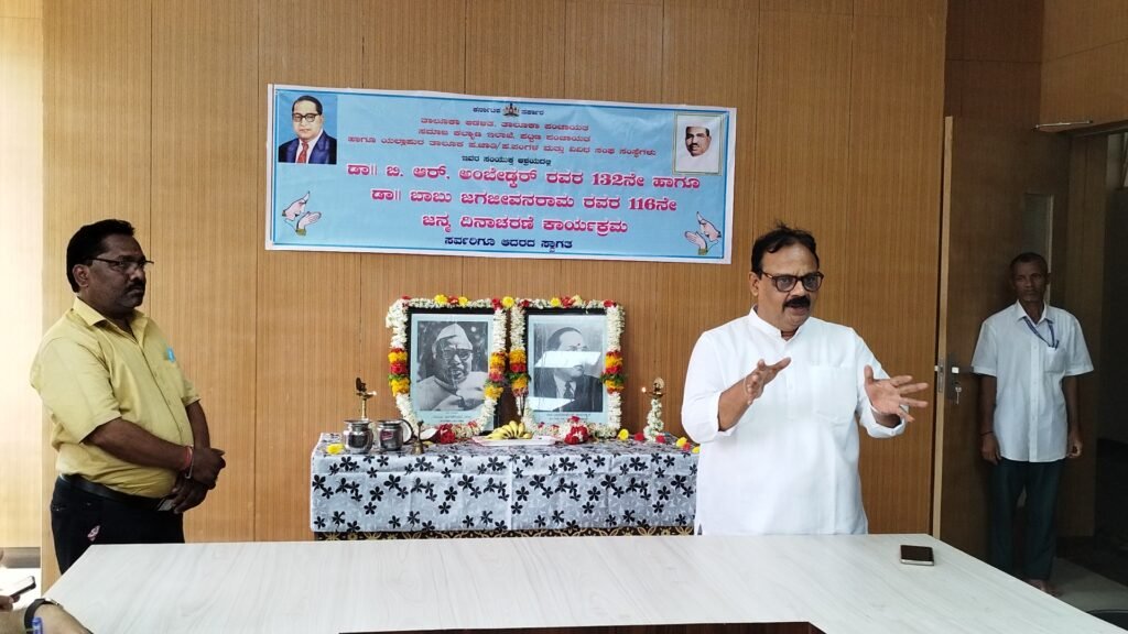 ಪ್ರತಿಧ್ವನಿ,ಯಲ್ಲಾಪುರ-ಪಟ್ಟಣದ ತಹಶಿಲ್ದಾರ್ ಕಚೇರಿಯಲ್ಲಿ ಅತ್ಯಂತ ಸರಳವಾಗಿ ಸಂವಿಧಾನ ಶಿಲ್ಪಿ ಡಾ,ಬಾಬಾ ಸಾಹೆಬ್ ಅಂಬೇಡ್ಕರ್ ಜಯಂತಿ ಹಾಗು ಬಾಬು ಜಗಜೀವನರಾಮ್ ಆಚರಿಸಲಾಯಿತು.