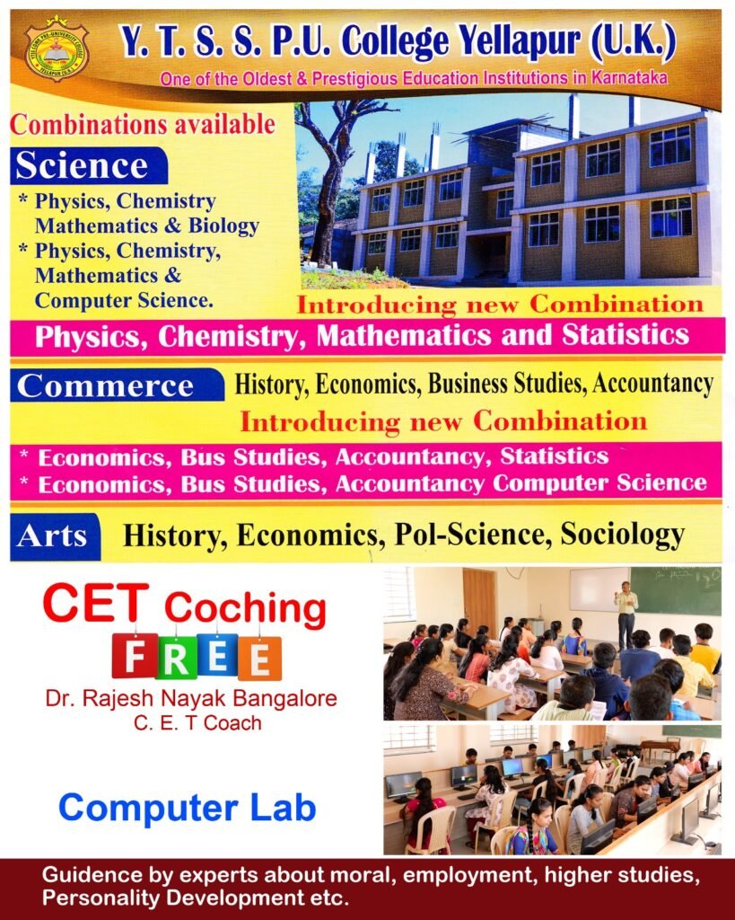 ಪ್ರಸಕ್ತ ವರ್ಷದಿಂದ ನುರಿತ ಸಿ.ಇ.ಟಿ ತರಬೇತುದಾರರಿಂದ ಉತ್ತಮ ತರಭೇತಿ ನಿಮ್ಮ ಮಕ್ಕಳ ಉಜ್ವಲ ಭವಿಷ್ಯಕ್ಕೆ ವೈ.ಟಿ.ಎಸ್.ಎಸ್ ಉತ್ತಮ ಆಯ್ಕೆ