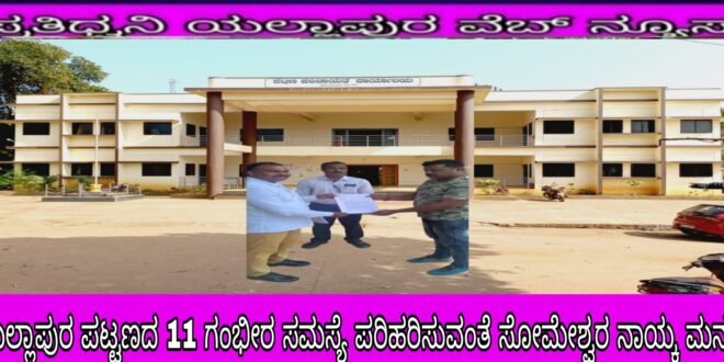 ಪ್ರತಿಧ್ವನಿ ಯಲ್ಲಾಪುರ : ಪಟ್ಟಣ ಪಂಚಾಯತ ವ್ಯಾಪ್ತಿಯಲ್ಲಿ ಅವ್ಯವಸ್ಥೆಗಳು ತಾಂಡವವಾಡುತ್ತಿದ್ದು ಶೀಘ್ರ ಪರಿಹರಿಸುವಂತೆ ಮುಖ್ಯಾಧಿಕಾರಿ ಸುನಿಲ್ ಗಾವಡೆಯವರಿಗೆ ರವೀಂದ್ರನಗರ ಪಟ್ಟಣ ಪಂಚಾಯತ ಸದಸ್ಯ ಸೋಮೇಶ್ವರ ನಾಯ್ಕ 11 ಸಮಸ್ಯೆಗಳನ್ನು ಉಲ್ಲೇಖಿಸಿ ಮನವಿ ಸಲ್ಲಿಸಿದರು.