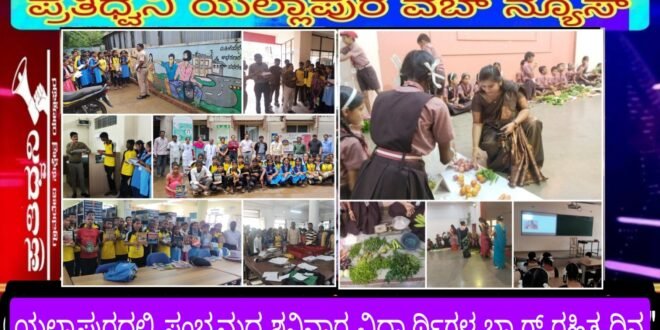 ಪ್ರತಿಧ್ವನಿ,ಯಲ್ಲಾಪುರ : ರಾಜ್ಯ ಸರ್ಕಾರದ ನಿರ್ಧೇಶನದಂತೆ ಶಿಕ್ಷಣ ಇಲಾಖೆಯ ಆದೇಶದಂತೆ ರಾಜ್ಯದಾದ್ಯಂತ ಪ್ರಾಥಮಿಕ ಹಾಗು ಪ್ರೌಡಶಾಲೆ ವಿದ್ಯಾರ್ಥಿಗಳಿಗೆ ಪಠ್ಯ ಚಟುವಟಿಕೆಯೊಂದಿಗೆ ಪಠ್ಯೇತರ ಚಟುವಟಿಕೆಗೆ ಒತ್ತು ನೀಡುವ ಸಲುವಾಗಿ ಸಂಭ್ರಮದ ಶನಿವಾರ ಹೆಸರಿನಲ್ಲಿ ” ಬ್ಯಾಗ್ ರಹಿತ ದಿನ” ವಾಗಿ ತಿಂಗಳ ಮೂರನೆ ಶನಿವಾರ ಆಚರಿಸುತ್ತಿದ್ದು ಯಲ್ಲಾಪುರದ ಶಾಲೆಗಳಲ್ಲಿ ಸಂಭ್ರಮದ ಶನಿವಾರ ವಿಶೇಷ ರೀತಿಯಲ್ಲಿ ಆಚರಿಸಲಾಗುತ್ತಿದೆ.