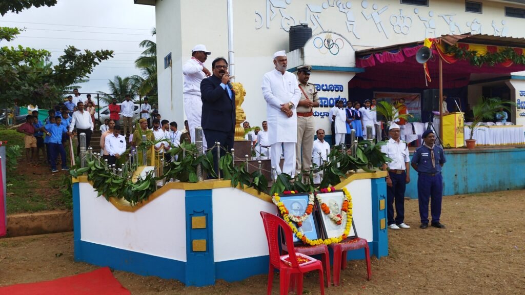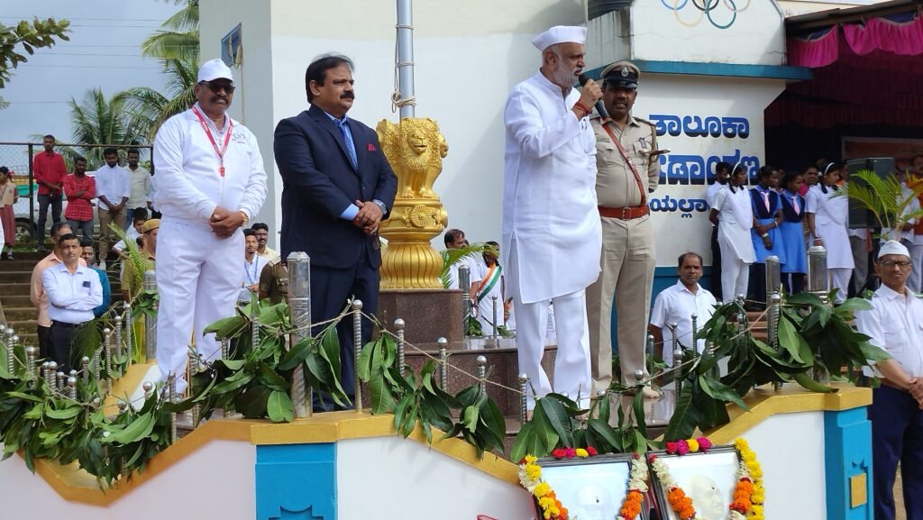 ಅವರು ಪಟ್ಟಣದ ಕಾಳಮ್ಮನಗರದಲ್ಲಿರುವ ತಾಲೂಕಾ ಕ್ರೀಡಾಂಗಣದಲ್ಲಿ ಆಯೋಜಿಸಲಾದ 76 ನೇ ವರ್ಷದ ಸ್ವಾತಂತ್ರ್ಯ ಸಂಭ್ರಮದ ಧ್ವಜಾರೋಹಣ ನೆರವೇರಿಸಿ ಜನತೆಗೆ ಶುಭ ಕೋರಿ ಮಾತನಾಡಿದರು.