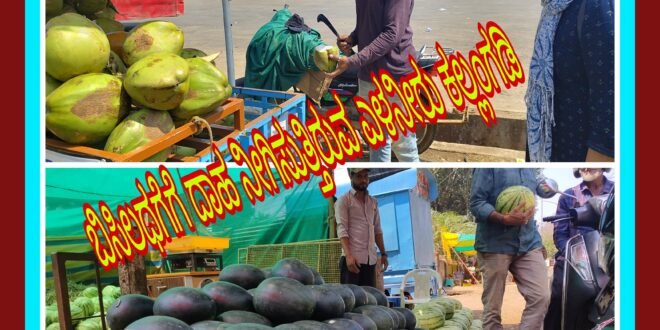 ಪ್ರತಿಧ್ವನಿ ಯಲ್ಲಾಪುರ : ಬೇಸಿಗೆಯ ಝಳ ದಿನದಿಂದ ದಿನಕ್ಕೆ ಹೆಚ್ಚಾಗುತ್ತಿದ್ದು ಬಿಸಿಲ ಹೊಡೆತಕ್ಕೆ ಜನ ಹೈರಾಣಾಗಿ ಹೋಗಿದ್ದಾರೆ. ಬಾಯಾರಿಕೆ ನೀಗಿಸಲು ಎಳನೀರು ಮತ್ತು ಕಲ್ಲಂಗಡಿ ಹಣ್ಣಿಗೆ ಮೊರೆಹೋಗಿದ್ದಾರೆ.