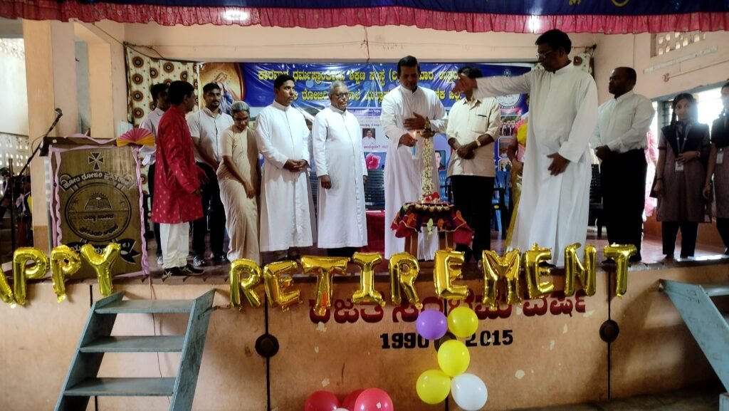 ವಿದ್ಯಾರ್ಥಿಗಳ ಪ್ರಾರ್ಥನೆಯೊಂದಿಗೆ ಆರಂಭವಾದ ಕಾರ್ಯಕ್ರಮದಲ್ಲಿ ಪ್ರೌಢಶಾಲೆಯ ಶಿಕ್ಷಕ ಫಾ||ರೇಮಂಡ್ ಫರ್ನಾಂಡಿಸ್ ಸ್ವಾಗತಿಸಿದರು. ಶಿಕ್ಷಕರಾದ ಚಂದ್ರಶೇಖರ ನಿರ್ವಹಿಸಿದರು. ಎಂ.ರಾಜಶೇಖರ ವಂದಿಸಿದರು. ನಿವೃತ್ತ ಶಿಕ್ಷಕರನ್ನು ಅಲಂಕೃತ ವೇದಿಕೆಗೆ ವಿದ್ಯಾರ್ಥಿಗಳ ಬ್ಯಾಂಡ್‌ಸೆಟ್ ಮೂಲಕ ಕರೆತರಲಾಯಿತು. ನಿವೃತ್ತ ಶಿಕ್ಷಕರ ಸಾಧನೆಗಳನ್ನು ವೀಡಿಯೊ ಪರದೆಯ ಮೂಲಕ ಪ್ರದರ್ಶಿಸಲಾಯಿತು.