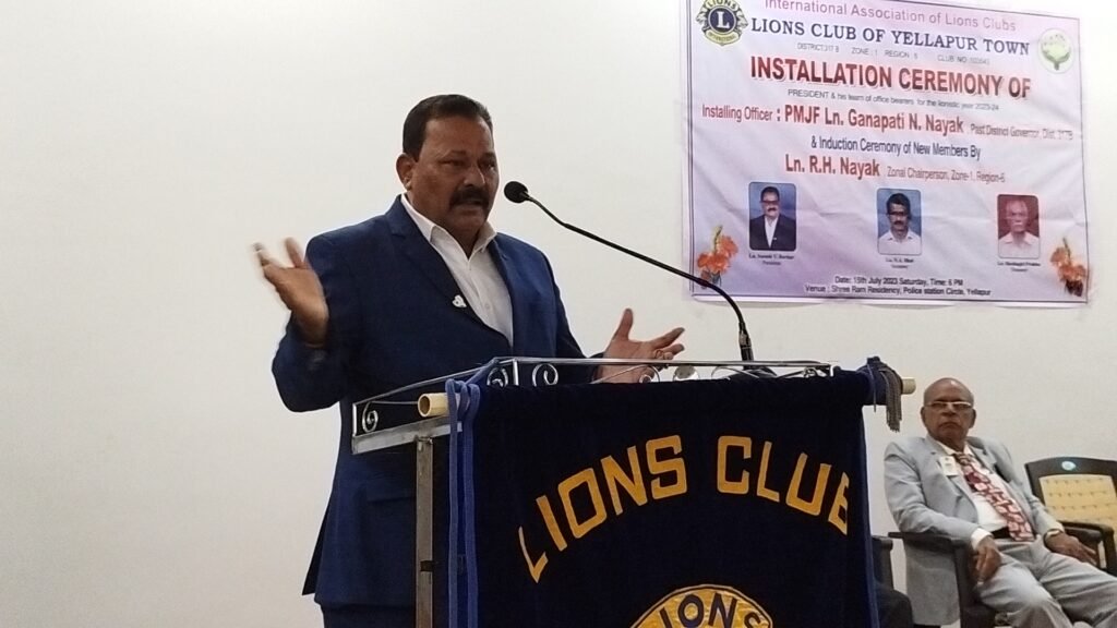 ಅವರು ಪಟ್ಟಣದ ಗಾಂಧಿವೃತ್ತದಲ್ಲಿರುವ ಶ್ರೀರಾಮ್ ರೆಸಿಡೆನ್ಸಿ ಪಾರ್ಟಿ ಹಾಲ್ ನಲ್ಲಿ ನಡೆದ ಯಲ್ಲಾಪುರ ಟೌನ್ ಲಯನ್ಸ್ ಕ್ಲಬ್ ನೂತನ ಪದಾಧಿಕಾರಿಗಳ ಪದಗ್ರಹಣ ಸಮಾರಂಭದಲ್ಲಿ ಪ್ರಮಾಣವಚನ ಬೋಧಿಸಿ ನೂತನ ಅಧ್ಯಕ್ಷರಿಗೆ ಪದವಿ ಪ್ರಧಾನ ಮಾಡಿ ಮಾತನಾಡಿದರು.