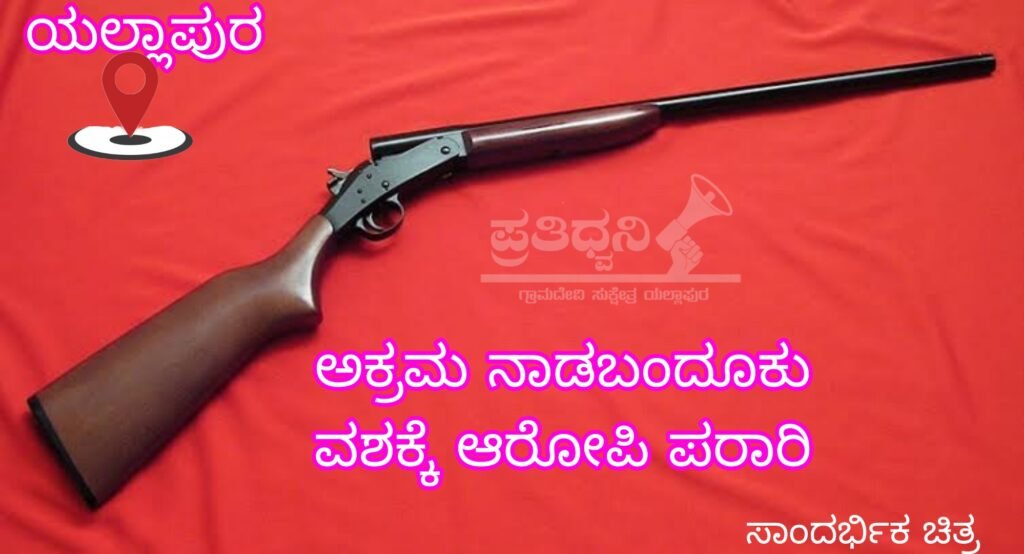 ಪ್ರತಿದ್ವನಿ ಯಲ್ಲಾಪುರ : ತಾಲೂಕಿನ ನಂದೊಳ್ಳಿ ಗ್ರಾಮ ಪಂಚಾಯತ ವ್ಯಾಪ್ತಿಯ ತೆಂಗಿನಜಡ್ಡಿಯಲ್ಲಿ ಯಾವುದೇ ಪರವಾನಗಿ ಇಲ್ಲದೇ ಅಕ್ರಮವಾಗಿ ಇರಿಸಿಕೊಂಡಿದ್ದ ನಾಡ ಬಂದೂಕನ್ನು ಯಲ್ಲಾಪುರ ಪೊಲೀಸರು ವಶಪಡಿಸಿಕೊಂಡಿದ್ದಾರೆ.