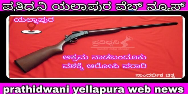 ಪ್ರತಿದ್ವನಿ ಯಲ್ಲಾಪುರ : ತಾಲೂಕಿನ ನಂದೊಳ್ಳಿ ಗ್ರಾಮ ಪಂಚಾಯತ ವ್ಯಾಪ್ತಿಯ ತೆಂಗಿನಜಡ್ಡಿಯಲ್ಲಿ ಯಾವುದೇ ಪರವಾನಗಿ ಇಲ್ಲದೇ ಅಕ್ರಮವಾಗಿ ಇರಿಸಿಕೊಂಡಿದ್ದ ನಾಡ ಬಂದೂಕನ್ನು ಯಲ್ಲಾಪುರ ಪೊಲೀಸರು ವಶಪಡಿಸಿಕೊಂಡಿದ್ದಾರೆ.