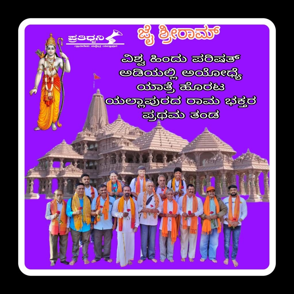 ಯಲ್ಲಾಪುರ ಪಟ್ಟಣದ ಹೆಸರಾಂತ ಕೆತ್ತನೆ ಶಿಲ್ಪಿ ಸಂತೋಷ ಬಿಕ್ಕು ಗುಡಿಗಾರ, ವ್ಯಾಪಾರಸ್ಥ ಹನುಮಂತ ಎಸ್ ಶಿಂಗನಳ್ಳಿ , ಪತ್ರಕರ್ತ ಕೇಬಲ್ ನಾಗೇಶ್, ಕೇಶವ ದುರ್ಗಾ ಗಾಂವ್ಕರ್, ಅಕ್ಷಯ್ ಅಶೋಕ ಕಿತ್ತೂರ್, ಆಕಾಶ ಮಲ್ಲೇಶ ಅನಿಗೊಳ, ಯಾದವ ತುಕಾರಾಮ ಮರಾಠೆ, ಸುರೇಂದ್ರ ಮುರ್ಕುಂಬಿ ಸೇರಿದಂತೆ 8 ಮಂದಿ ಹಾಗು ಗ್ರಾಮೀಣ ಭಾಗದ ರಾಮಕೃಷ್ಣ ಗಣಪೂಮನೆ, ಉಮಾಮಹೇಶ್ವರ ಮೆಣಸುಮನೆ, ವಿ.ಪಿ.ಹೆಬ್ಬಾರ್ ಮಲವಳ್ಳಿ, ರಾಜಾರಾಮ ಗಾಂವ್ಕರ್, ರಾಮಚಂದ್ರ ಗಣಪುಮನೆ , ರಾಮಚಂದ್ರ ಸೇರಿದಂತೆ 6 ಮಂದಿ ಗ್ರಾಮೀಣ ಭಾಗದ ರಾಮಭಕ್ತರು ಅಯೋದ್ಯೆಗೆ ಪಯಣ ಬೆಳೆಸಿದರು.