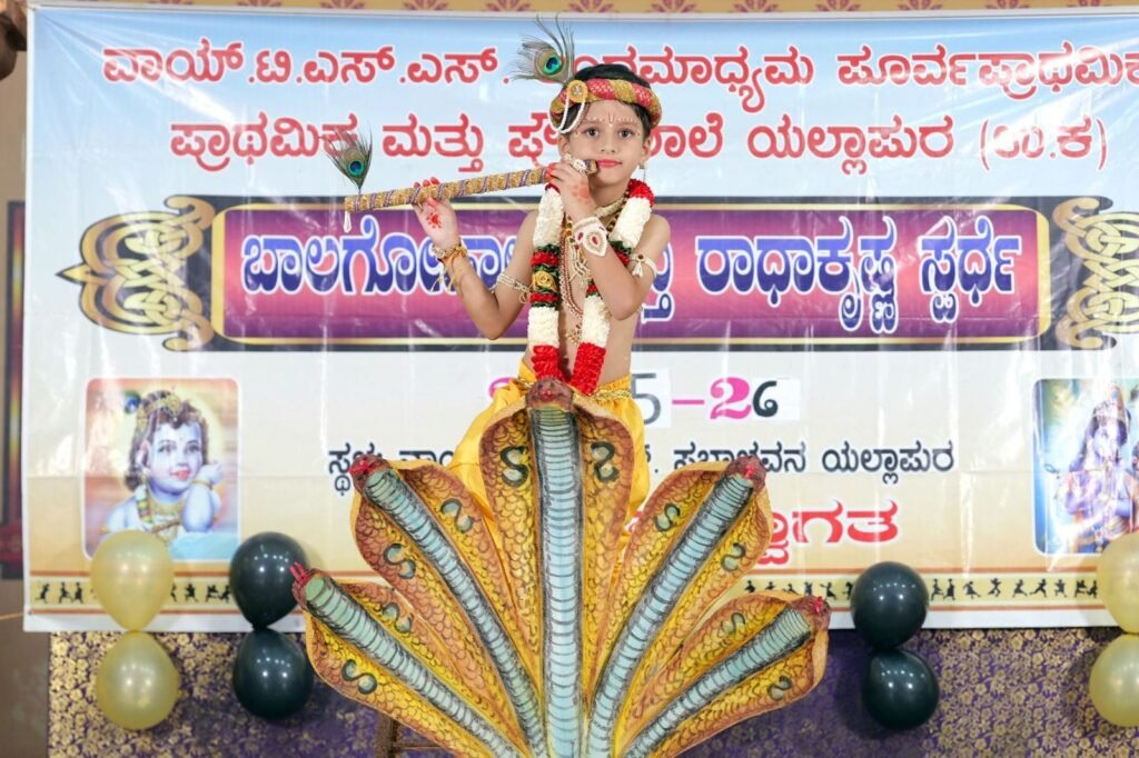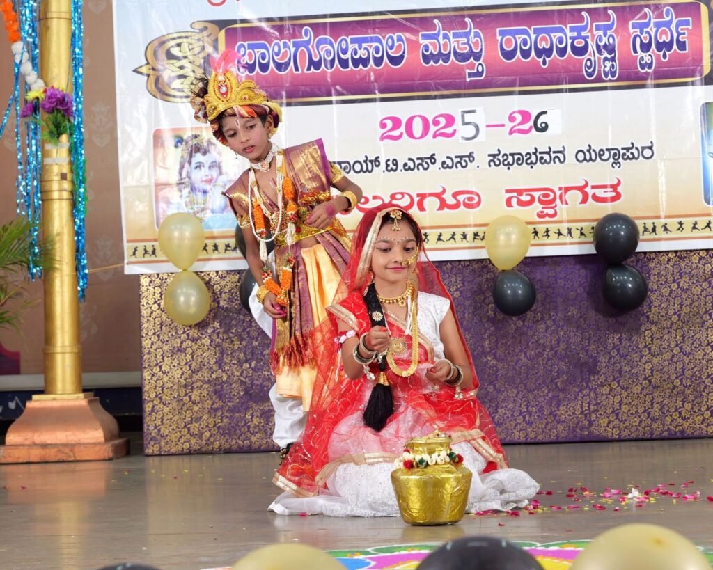 ಯಲ್ಲಾಪುರ : ಸ್ಥಳೀಯ ವೈ.ಟಿ.ಎಸ್.ಎಸ್ ಶಿಕ್ಷಣ ಸಂಸ್ಥೆಯ ಆಂಗ್ಲ ಮಾಧ್ಯಮ ವಿಭಾಗದಲ್ಲಿ ಆ,14 ರಂದು ಶ್ರೀ ಕೃಷ್ಣ ಜನ್ಮಾಷ್ಟಮಿ ಅಂಗವಾಗಿ ಬಾಲಗೋಪಾಲ ಮತ್ತು ರಾಧಾಕೃಷ್ಣ ವೇಷ ಸ್ಪರ್ಧೆಯನ್ನು ಹಮ್ಮಿಕೊಳ್ಳಲಾಯಿತು.