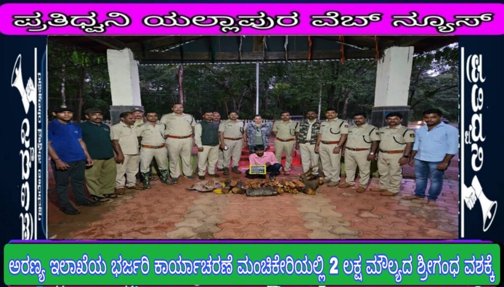 ಆರೋಪಿಯು ಮಂಚಿಕೇರಿ ಜನತಾ ಕಾಲೋನಿ ನಿವಾಸಿ ಗಣೇಶ ಸೋಮು ಲಮಾಣಿ ಎಂಬುವನಾಗಿದ್ದು ಈತನ ಮನೆಯಲ್ಲಿ ಅಕ್ರಮವಾಗಿ ದಾಸ್ತಾನು ಇಟ್ಟಿದ್ದ 52 ಕೆಜಿ ತೂಕದ ಅಂದಾಜು 2 ಲಕ್ಷ ರೂ ಮೌಲ್ಯದ ಶ್ರೀಗಂದದ ಕಟ್ಟಿಗೆಯನ್ನು ಅರಣ್ಯ ಇಲಾಖೆ ಅಧಿಕಾರಿಗಳು ಮತ್ತು ಸಿಬ್ಬಂದಿಗಳು ಖಚಿತ ಮಾಹಿತಿಯನ್ನಾದರಿಸಿ ದಾಳಿಮಾಡಿ ಶ್ರೀಗಂಧ ವಶಕ್ಕೆ ಪಡೆದು ಆರೋಪಿಯನ್ನು ಬಂಧಿಸಲಾಗಿದೆ. ಈ ಕಾರ್ಯಾಚರಣೆಯು ಯಲ್ಲಾಪುರ ವಿಭಾಗದ ಉಪ ಅರಣ್ಯ ಸಂರಕ್ಷಣಾಧಿಕಾರಿ ಎಸ್. ಜಿ. ಹೆಗಡೆ ಅರವರ ಮಾರ್ಗದರ್ಶನದಲ್ಲಿ ಮಂಚಿಕೇರಿ ಉಪ ವಿಭಾಗದ ಸಹಾಯಕ ಅರಣ್ಯ ಸಂಕ್ಷಣಾಧಿಕಾರಿ ಹಿಮವತಿ ಭಟ್ ಅರವರ ನೇತೃತ್ವದಲ್ಲಿ ಮಂಚಿಕೇರಿ ವಲಯದ ವಲಯ ಅರಣ್ಯಾಧಿಕಾರಿ ಅಮಿತಕುಮಾರ ಚವ್ಹಾಣ ಒಳಗೊಂಡಂತೆ ಮಂಚಿಕೇರಿ ಶಾಖೆಯ ಉಪವಲಯ ಅರಣ್ಯಾಧಿಕಾರಿ ಪವನಕುಮಾರ ಲೋಕುರ,ಉಪವಲಯ ಅರಣ್ಯಾಧಿಕಾರಿ ಸಂತೋಷ ಪವಾರ , ಸಂಗಮೇಶ ಅಂಗಡಿ, ಕಲ್ಲಪ್ಪ. ಬರದೂರ, ಮಂಜುನಾಥ ಆಗೇರ,ಜಗದೀಶ ಪಾಲಕನವರ , ವಿರಾಜ್ ನಾಯಕ, ಹಾಗೂ ಗಸ್ತು ವನಪಾಲಕರಾದ ವಿಷ್ಣು ಪೂಜಾರಿ ಮತ್ತು ವಾಹನ ಚಾಲಕರಾದ ಗಂಗಾಧರ ರೆಡ್ಡಿ, ಮಂಜು ನಾಯ್ಕ ಮತ್ತು ಅರಣ್ಯ ವೀಕ್ಷಕರುಗಳು ಮತ್ತು ಸಿಬ್ಬಂದಿಗಳು ಕಾರ್ಯಾಚರಣೆಯಲ್ಲಿ ಪಾಲ್ಗೊಂಡಿದ್ದರು.
