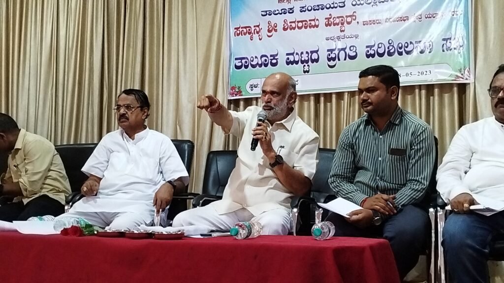 ಯಲ್ಲಾಪುರ ತಾಲೂಕಿನ ಅಧಿಕಾರಿಗಳು ಉತ್ತಮ ಕೆಲಸ ಕಾರ್ಯ ಮಾಡಿದ್ದು ನಾನು ಮಾಡಿದ ಅಭಿವೃದ್ಧಿ ಕಾರ್ಯಗಳು ಜನರಿಗೆ ತಲುಪುವಲ್ಲಿ ನಿಮ್ಮ ಪಾತ್ರ ದೊಡ್ಡದಿದೆ. ಅಧಿಕಾರಿಗಳು ಮಾಡುವ ತಪ್ಪುಗಳಿಗೆ ನಾನೆ ಹೊಣೆಗಾರನಾಗುತ್ತೇನೆ.ಅವರು ಮಾಡುವ ಉತ್ತಮ ಕೆಲಸಗಳ ಶ್ರೇಯವು ನನಗೆ ಸಲ್ಲುತ್ತದೆ. ಅದಕ್ಕೆ ತಾಜಾ ಉದಾಹರಣೆ ಎಂದರೆ ಮೊನ್ನೆ ತಾನೆ ನಡೆದ ವಿಧಾನಸಭಾ ಚುನಾವಣೆಯಲ್ಲಿ ಯಲ್ಲಾಪುರ ತಾಲೂಕಿನ ಮತದಾರರು ಐದು ಸಾವಿರದಷ್ಟು ಅಧಿಕ ಮತಗಳನ್ನು ನೀಡಿ ಆಶಿರ್ವದಿಸಿರುವುದೆ ಆಗಿದೆ ಇದಕ್ಕೆ ಅಧಿಕಾರಿ ವರ್ಗದವರೆಲ್ಲರಿಗು ಶರಣು ಎನುವೆ. ಶಿವರಾಮ ಹೆಬ್ಬಾರ್ ಯಲ್ಲಾಪುರ ವಿಧಾನಸಭಾ ಕ್ಷೇತ್ರದ ಶಾಸಕ