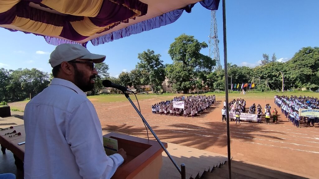 ದೈಹಿಕ ಶಿಕ್ಷಕ ಗಂಗಾ ನಾಯಕ್ ಕ್ರೀಡಾಪಟುಗಳಿಗೆ ಪ್ರತಿಜ್ಞಾ ವಿಧಿ ಬೋಧಿಸಿದರು.