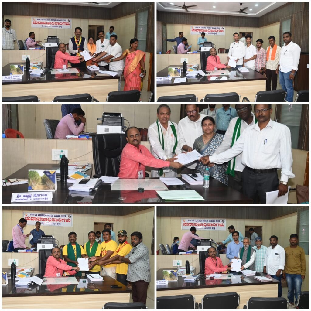 ಜೆ.ಡಿ.ಎಸ್ ನ ನಾಗೇಶ್ ನಾಯ್ಕ ಕಾಗಾಲ ಪತ್ನಿ ಪುಷ್ಪಾ ನಾಗೇಶ್ ನಾಯ್ಕ ಜೊತೆಯಲ್ಲಿ ಹಲವು ಪ್ರಮುಖರೊಂದಿಗೆ ನಾಮಪತ್ರ ಸಲ್ಲಿಸಿದರು. ಕೆ.ಆರ್.ಪಿ.ಪಿ ಯ ಸಂತೋಷ್ ರಾಯ್ಕರ್ ತಮ್ಮ ಪತ್ನಿ ಆಶಾ ರಾಯ್ಕರ ಜೊತೆಯಲ್ಲಿ ಹಿತೈಷಿಗಳೊಂದಿಗೆ ನಾಮಪತ್ರ ಸಲ್ಲಿಸಿದರೆ ಉಳಿದ ಮೂವರು ಅಭ್ಯರ್ಥಿಗಳು ತಮ್ಮ ಕೆಲವೇ ಮಂದಿ ಹಿತೈಷಿಗಳೊಡನೆ ಬಂದು ನಾಮಪತ್ರ ಸಲ್ಲಿಸಿದರು.