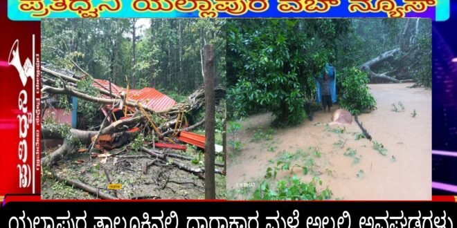 ಪ್ರತಿಧ್ವನಿ,ಯಲ್ಲಾಪುರ : ಕಳೆದೆರಡು ದಿನಗಳಿಂದ ಘಟ್ಟದ ಮೇಲ್ಭಾಗದಲ್ಲಿ ಉತ್ತಮ ಮಳೆಯಾಗುತ್ತಿದ್ದು ಹಳ್ಳ-ಕೊಳ್ಳಗಳು, ನದಿ-ತೊರೆಗಳು ತುಂಬಿ ಹರಿಯುತ್ತಿವೆ. ಮಂಗಳವಾರ 140.6ಮಿ.ಮೀ ಮಳೆಯಾಗಿದ್ದು ಸುರಿದ ಧಾರಾಕಾರ ಮಳೆಗೆ ತಾಲೂಕಿನ ಕೆಲವೆಡೆ ಅವಾಂತರ ಸೃಷ್ಟಿಯಾಗಿದೆ.