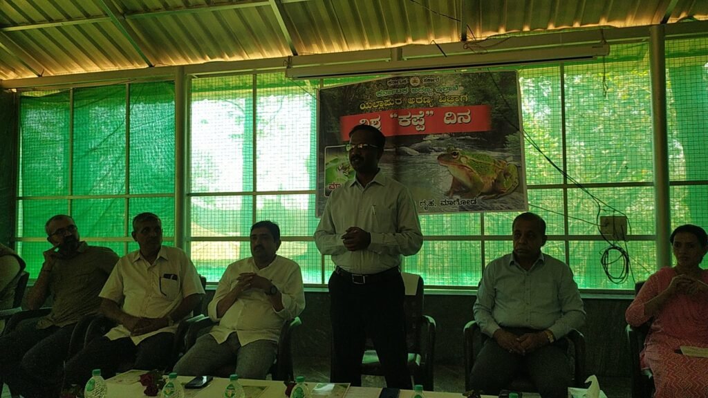ಕಾರ್ಯಕ್ರಮ ಉದ್ಘಾಟಿಸಿದ ಅರಣ್ಯ ಸಂರಕ್ಷಣಾಧಿಕಾರಿ ವಸಂತರೆಡ್ಡಿ ಮಾತನಾಡಿ ನಮ್ಮ ಸುತ್ತಮುತ್ತಲಿನ ಪರಿಸರದಲ್ಲಿ 230 ವಿವಿಧ ಪ್ರಭೇದದ ಕಪ್ಪೆಗಳಿದ್ದು ಅವುಗಳ ಸಂರಕ್ಷಣೆ ಮನುಕುಲದ ಜವಾಬ್ದಾರಿಯಾಗಿದೆ. ಮನುಷ್ಯನ ನಡೆ ಪ್ರಕೃತಿ ಎಡೆಗೆ ಸಾತ್ವಿಕ ವಾಗಿ ಸಾಗಬೇಕಿದೆ ಆದರೆ ದುರಾದೃಷ್ಟ ಇತ್ತೀಚಿನ ದಿನಗಳಲ್ಲಿ ಮನುಷ್ಯನ ಕೃತ್ಯ ವಿಕೃತಿ ಯಾಗುತ್ತಿರುವುದು ವಿಷಾದದ ಸಂಗತಿಯಾಗಿದೆ. ಭೂಮಿಯ ಮೇಲೆ ಜೀವಿಗಳ ಆಹಾರ ಸರಪಳಿ ಮತ್ತು ಅವುಗಳ ಪ್ರಾಮುಖ್ಯತೆ ಎಷ್ಟೆಂಬುದನ್ನು ಅರಿತುಕೊಳ್ಳುವ ಮಹತ್ವಾಕಾಂಕ್ಷೆಯಿಂದ ವಿಶ್ವ ಕಪ್ಪೆದಿನ ಆಚರಿಸುತ್ತಿರುವುದು ಅರ್ಥಪೂರ್ಣವಾಗಿದೆ ಎಂದರು.