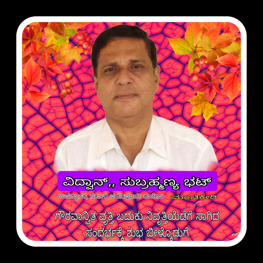 ಕಾಲೇಜು ಅಭಿವೃದ್ಧಿ ಸಮಿತಿ, ವಿದ್ಯಾರ್ಥಿಗಳು ಹಾಗೂ ಅಭಿಮಾನಿಗಳಿಂದ ಬೀಳ್ಕೊಡುಗೆಯ ಗೌರವ ಸ್ವೀಕರಿಸಿ, ತಾವು ಕಾಲೇಜಿಗೆ ಕೊಡುಗೆಯಾಗಿ ನೀಡಿದ `ಡಯಾಸ್’ ಅನ್ನು ಪ್ರಾಂಶುಪಾಲರಿಗೆ ಹಸ್ತಾಂತರಿಸಿ ಮಾತನಾಡಿದ ನಿವೃತ್ತ ಕನ್ನಡ ಉಪನ್ಯಾಸಕ ವಿದ್ವಾನ್ ಸುಬ್ರಹ್ಮಣ್ಯ ಭಟ್ಟ ಮಾತನಾಡಿ, 16 ವರ್ಷಗಳ ಕಾಲ ಮಂಚೀಕೇರಿಯಲ್ಲಿ ಈ ಪ್ರದೇಶದ ಜನತೆ ವಿದ್ಯಾರ್ಥಿಗಳು ಹಾಗೂ ಉಪನ್ಯಾಸಕ ವೃಂದದವರು ತೋರಿದ ಅಭಿಮಾನ ಮರೆಯಲಾಗದು.