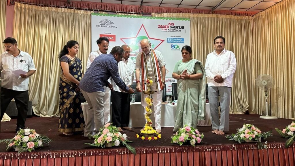 ಶನಿವಾರ ಪಟ್ಟಣದ ಅಡಿಕೆ ಭವನದಲ್ಲಿ ವಿಜಯ ಕರ್ನಾಟಕ ವತಿಯಿಂದ ಹಮ್ಮಿಕೊಂಡಿದ್ದ ವಿಕ ಸೂಪರ್ ಸ್ಟಾರ್ ರೈತ 2024 – 25 ರ  ಪ್ರಶಸ್ತಿ ಪುರಸ್ಕಾರ ಕಾರ್ಯಕ್ರಮದಲ್ಲಿ ಯಲ್ಲಾಪುರ ವಿಧಾನಸಭಾ ಕ್ಷೇತ್ರದ ಶಾಸಕ ಶಿವರಾಮ ಹೆಬ್ಬಾರ್ ಪಾಲ್ಗೊಂಡು ದೀಪ ಬೆಳಗಿ ಉದ್ಘಾಟಿಸಿ ಉತ್ತರ ಕನ್ನಡ ಜಿಲ್ಲೆಯ ಪ್ರಗತಿ ಪರ ರೈತರನ್ನು ಸನ್ಮಾನಿಸಿ ಪ್ರಶಸ್ತಿ ಪತ್ರವನ್ನು ನೀಡಿ ಗೌರವಿಸಿದರು.