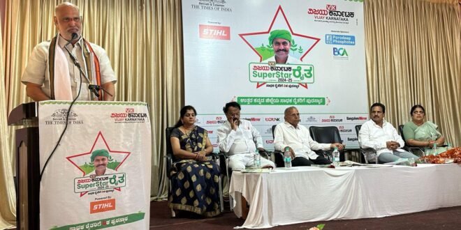 ಶನಿವಾರ ಪಟ್ಟಣದ ಅಡಿಕೆ ಭವನದಲ್ಲಿ ವಿಜಯ ಕರ್ನಾಟಕ ವತಿಯಿಂದ ಹಮ್ಮಿಕೊಂಡಿದ್ದ ವಿಕ ಸೂಪರ್ ಸ್ಟಾರ್ ರೈತ 2024 – 25 ರ  ಪ್ರಶಸ್ತಿ ಪುರಸ್ಕಾರ ಕಾರ್ಯಕ್ರಮದಲ್ಲಿ ಯಲ್ಲಾಪುರ ವಿಧಾನಸಭಾ ಕ್ಷೇತ್ರದ ಶಾಸಕ ಶಿವರಾಮ ಹೆಬ್ಬಾರ್ ಪಾಲ್ಗೊಂಡು ದೀಪ ಬೆಳಗಿ ಉದ್ಘಾಟಿಸಿ ಉತ್ತರ ಕನ್ನಡ ಜಿಲ್ಲೆಯ ಪ್ರಗತಿ ಪರ ರೈತರನ್ನು ಸನ್ಮಾನಿಸಿ ಪ್ರಶಸ್ತಿ ಪತ್ರವನ್ನು ನೀಡಿ ಗೌರವಿಸಿದರು.