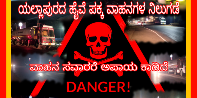 ಪ್ರತಿಧ್ವನಿ ಯಲ್ಲಾಪುರ : ಪಟ್ಟಣದಲ್ಲಿ ಹಾದು ಹೋಗಿರುವ ಬಳ್ಳಾರಿ-ಕಾರವಾರ ರಾಷ್ಟ್ರೀಯ ಹೆದ್ದಾರಿ ರಾತ್ರಿ ವೇಳೆಯಲ್ಲಿ ಅತ್ಯಂತ ಅಪಾಯಕಾರಿಯಾಗಿ ಪರಿಣಮಿಸುತ್ತಿದ್ದು ಅದಕ್ಕೆ ಪ್ರಮುಖ ಕಾರಣ ರಸ್ತೆ ಪಕ್ಕದಲ್ಲೆ ನಿಲ್ಲಸುವ ಬೃಹತ್ ಗಾತ್ರದ ವಾಹನಗಳಾಗಿವೆ.