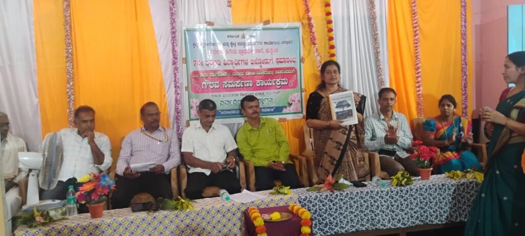 ಬಿಇಓ ರೇಖಾ ನಾಯ್ಕ,ಪ್ರಕಾಶ ತಾರಿಕೊಪ್ಪ,ಪ್ರಶಾಂತ ಜಿ.ಎನ್,ದೀಪಾ ಶೆಟ್ಟಿ ಇವರುಗಳನ್ನು ಶಾಲಾ ವತಿಯಿಂದ ಗೌರವಿಸಲಾಯಿತು.ಏಳನೇ ತರಗತಿಯ ವಿದ್ಯಾರ್ಥಿಗಳು ತಮ್ಮಕೊಡುಗೆಯಾಗಿ ಶಾಲೆಗೆ ಕಪಾಟ (ಅಲಮಾರ್) ನ್ನು ನೀಡಿದರು.ಮುಖ್ಯಾಧ್ಯಾಪಕ ಸತೀಶ ಶೆಟ್ಟಿ ಸ್ವಾಗತಿಸಿ ಪ್ರಾಸ್ತಾವಿಕಗೈದು ಕಾರ್ಯಕ್ರಮ ನಿರ್ವಹಿಸಿದರು.