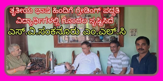 ಪ್ರತಿಧ್ವನಿ ಯಲ್ಲಾಪುರ : ಎಸ್.ಎಸ್.ಎಲ್.ಸಿ ಹಿಂದಿ ಪರೀಕ್ಷೆ ಮಾರ್ಚ 31 ರ ಮಂಗಳವಾರ ಜರುಗುತ್ತಿರುವ ಸಂದರ್ಭದಲ್ಲಿ ಸರಕಾರ ಏಕಾಏಕಿಯಾಗಿ ತೃತೀಯ ಭಾಷೆ ಹಿಂದಿಗೆ ಅಂಕಗಳ ಬದಲಾಗಿ ಗ್ರೇಡಿಂಗ್ ಪದ್ಧತಿಯನ್ನು ಜಾರಿಗೆ ತರಲು ಕೈಕೊಂಡ ನಿರ್ಧಾರ ವಿದ್ಯಾರ್ಥಿಗಳಲ್ಲಿ ಆತಂಕ ಹಾಗೂ ಗೊಂದಲಕ್ಕೆ ಕಾರಣವಾಗಿದೆ ಮತ್ತು ಇದು ದುಡಿಕಿನ ನಿರ್ಧಾರ ಎಂದು ವಿಧಾನ ಪರಿಷತ್ ಸದಸ್ಯ ಎಸ್.ವಿ. ಸಂಕನೂರ ಅವರು ಪತ್ರಿಕಾ ಹೇಳಿಕೆ ನೀಡಿದ್ದಾರೆ.