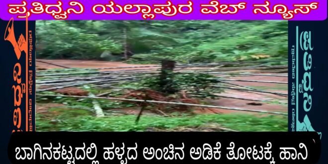 ತಾಲೂಕಿನ ವಜ್ರಳ್ಳಿ ಗ್ರಾಮ ಪಂಚಾಯತ್ ವ್ಯಾಪ್ತಿಯ ಭಾಗೀನಕಟ್ಟ ಗ್ರಾಮದಲ್ಲಿ ಸ.ನಂ 36 ರ ಖಾತೆದಾರಳಾದ ಶ್ರೀಮತಿ ಟಿ ಕೋಮಾರ ಅವರಿಗೆ ಸೇರಿದ ಅಡಿಕೆ ತೋಟವು ಹಳ್ಞ ಹರಿಯುವ ರಭಸಕ್ಕೆ ಹಳ್ಳದ ತಟದಲ್ಲಿದ್ದ ಸುಮಾರು 100 ಕ್ಕು ಅಧಿಕ ಅಡಿಕೆ ಮರಗಳು ಧರಾಶಾಯಿಯಾಗಿ ಬರೊಬ್ಬರಿ 8 ಅಡಿ ಆಳದ ವರೆಗೆ ಕುಸಿದಿದ್ದು 15 ಗುಂಟೆಯಷ್ಟು ತೋಟದ ಜಾಗವನ್ನು ಹರಿಯುತ್ತಿರುವ ಹಳ್ಳ ಆಪೋಷಣ ತೆಗೆದುಕೊಂಡಿದೆ.