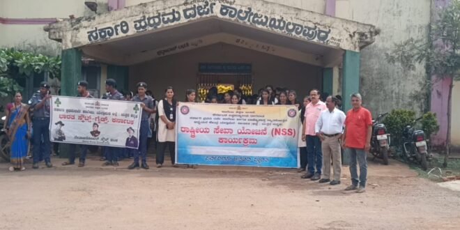 ಪ್ರತಿಧ್ವನಿ,ಯಲ್ಲಾಪುರ : ಪಟ್ಟಣದ ಸರ್ಕಾರಿ ಪ್ರಥಮ ದರ್ಜೆ ಕಾಲೇಜಿ£ ಎನ್.ಎಸ್.ಎಸ್, ಸ್ಕೌಟ್ ಅಂಡ್ ಗೈಡ್ಸ್ ಅಡಿಯಲ್ಲಿ ವಿಶ್ವ ಪರಿಸರ ದಿನಾಚರಣೆಯನ್ನು ಅತ್ಯಂತ ಅರ್ಥಪೂರ್ಣವಾಗಿ ಆಚರಿಸಲಾಯಿತು. ಇದರ ಅಂಗವಾಗಿ ಪರಿಸರ ಅರಿವು ಕುರಿತ ಜಾಥಾವನ್ನು ಹಮ್ಮಿಕೊಳ್ಳಲಾಗಿತ್ತು ಹಾಗೆಯೇ ಕಾಲೇಜಿನ ಆವರಣದಲ್ಲಿ ಸಸಿ ನೆಡುವ ಕಾರ್ಯಕ್ರಮವನ್ನು ಹಮ್ಮಿಕೊಳ್ಳಲಾಗಿತ್ತು.