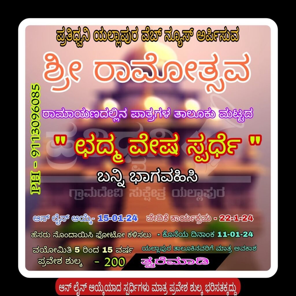 ಆತ್ಮೀಯ ಓದುಗ ಸ್ನೇಹಿತರೆ. ನಿಮ್ಮ ಸಹಕಾರ ಸದಾ ಹೀಗೆ ಇರಲಿ ಯಲ್ಲಾಪುರ ನೆಲದ ಹಿರಿಮೆ ಗರಿಮೆಗಳ ಸೌಂದರ್ಯ ಆದರ್ಶಗಳ ಶೈಕ್ಷಣಿಕ, ಸಾಮಾಜಿಕ, ಆರ್ಥಿಕ, ಸಾಂಸ್ಕೃತಿಕ, ರಾಜಕೀಯ, ಆರೋಗ್ಯ, ಪರಿಸರ ಇನ್ನಿತರ ವಿಷಯಗಳ ಬಗ್ಗೆ ತಮಗೆ ಸುದ್ದಿ ರೂಪದಲ್ಲಿ ತಲುಪಿಸುವ ಕಾರ್ಯ ಮಾಡುತ್ತಿದೆ ಪ್ರತಿಧ್ವನಿ ಯಲ್ಲಾಪುರ ವೆಬ್ ನ್ಯೂಸ್. ಇದೀಗ ಹೊಸತನದ ಕಾರ್ಯಕ್ರಮಗಳನ್ನು ಆಯೋಜಿಸುವ ಮೂಲಕ ಆಧ್ಯಾತ್ಮ ಕಾರ್ಯಕ್ಕೆ ಒತ್ತು ಕೊಡುತ್ತಿದೆ ನಿಮ್ಮೆಲ್ಲರ ಸಹಕಾರವಿರಲಿ. ಶ್ಯಾಮಲಾ ನಾಗೇಶ್, ಪ್ರದಾನ ಸಂಪಾದಕಿ, ” ಪ್ರತಿಧ್ವನಿ “