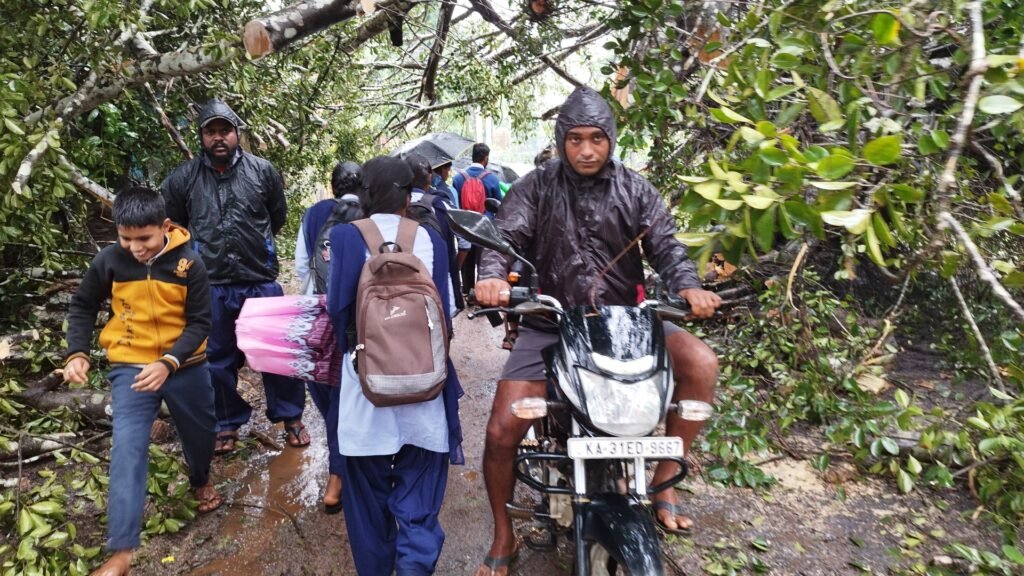 ಆದರು ಬಿದ್ದಿರುವ ಮರದ ಅಡಿಯಲ್ಲಿ ಜನಸಂಚಾರ, ದ್ವಿಚಕ್ರ ವಾಹನ ಸಂಚಾರಕ್ಲೆ ಸ್ಥಳಾವಕಾಶ ಮಾಡಲಾಯಿತು.