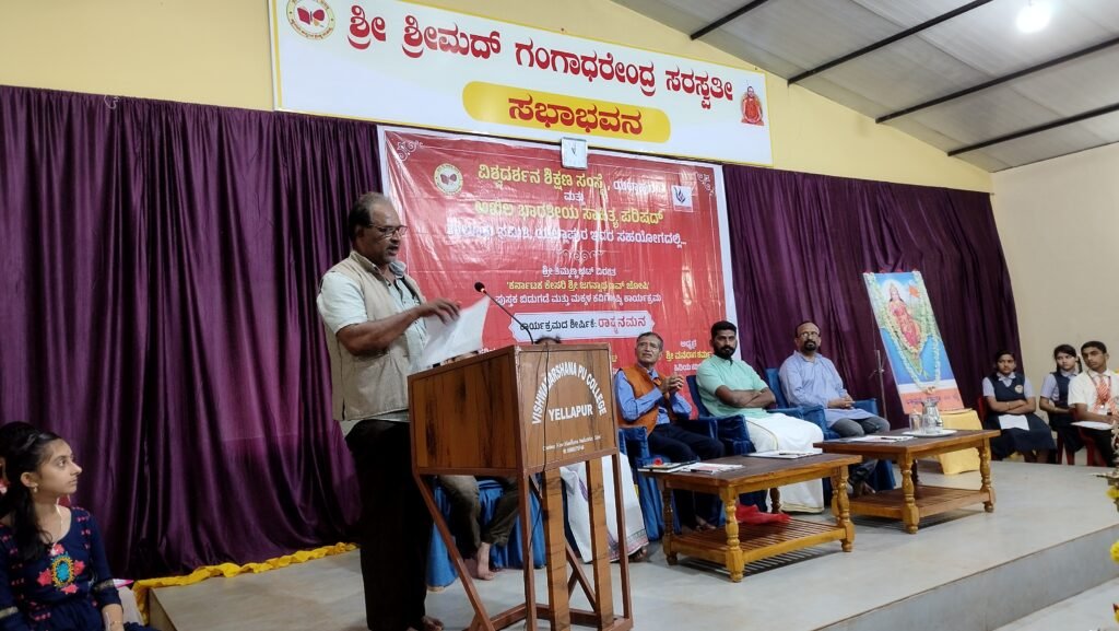 ಅವರು ಪಟ್ಟಣದ ವಿಶ್ವದರ್ಶನ ಶಿಕ್ಷಣ ಸಂಸ್ಥೆ ಸಭಾಭವನದಲ್ಲಿ ವಿಶ್ವದರ್ಶನ ಶಿಕ್ಷಣ ಸಂಸ್ಥೆ ಹಾಗೂ ಅಖಿಲ ಭಾರತೀಯ ಸಾಹಿತ್ಯ ಪರಿಷದ್ ತಾಲೂಕು ಘಟಕದ ಸಂಯುಕ್ತ ಆಶ್ರಯದಲ್ಲಿ ಹಮ್ಮಿಕೊಂಡ ರಾಷ್ಟ್ರನಮನ ಹಾಗೂ ಮಕ್ಕಳ ಕವಿಗೋಷ್ಠಿ ಕಾರ್ಯಕ್ರಮದಲ್ಲಿ ತಿಮ್ಮಣ್ಣ ಭಟ್ಟ ವಿರಚಿತ ‘ ಕರ್ನಾಟಕ ಕೇಸರಿ ಜಗನ್ನಾಥ ರಾವ್ ಜೊಶಿ’ ಪುಸ್ತಕ ಬಿಡುಗಡೆಗೊಳಿಸಿ ಮಾತನಾಡಿದರು.