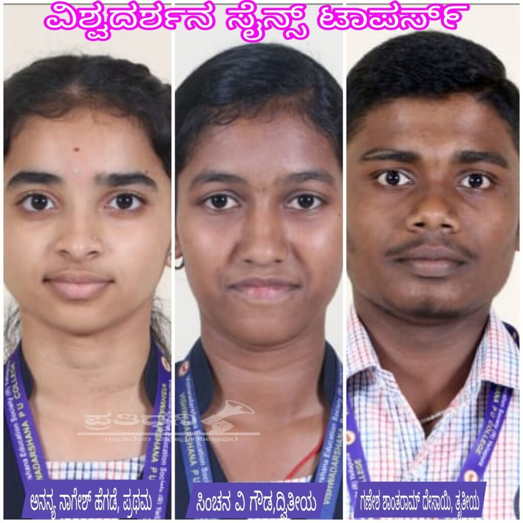 ವಿಜ್ಞಾನ ವಿಭಾಗದಲ್ಲಿ ಅನನ್ಯ ನಾಗೇಶ್ ಹೆಗಡೆ 96.8% ಅಂಕಗಳನ್ನು ಗಳಿಸಿ ಪ್ರಥಮ ಸ್ಥಾನ ಪಡೆದರೆ, ಸಿಂಚನಾ ವಿ. ಗೌಡ 96.3% ಅಂಕಗಳೊಂದಿಗೆ ದ್ವಿತೀಯ ಸ್ಥಾನ ಹಾಗೂ ಗಣೇಶ ಶಾಂತಾರಾಮ ದೇಸಾಯಿ 94.6% ಅಂಕಗಳೊಂದಿಗೆ ತೃತೀಯ ಸ್ಥಾನ ಪಡೆದಿದ್ದಾರೆ.