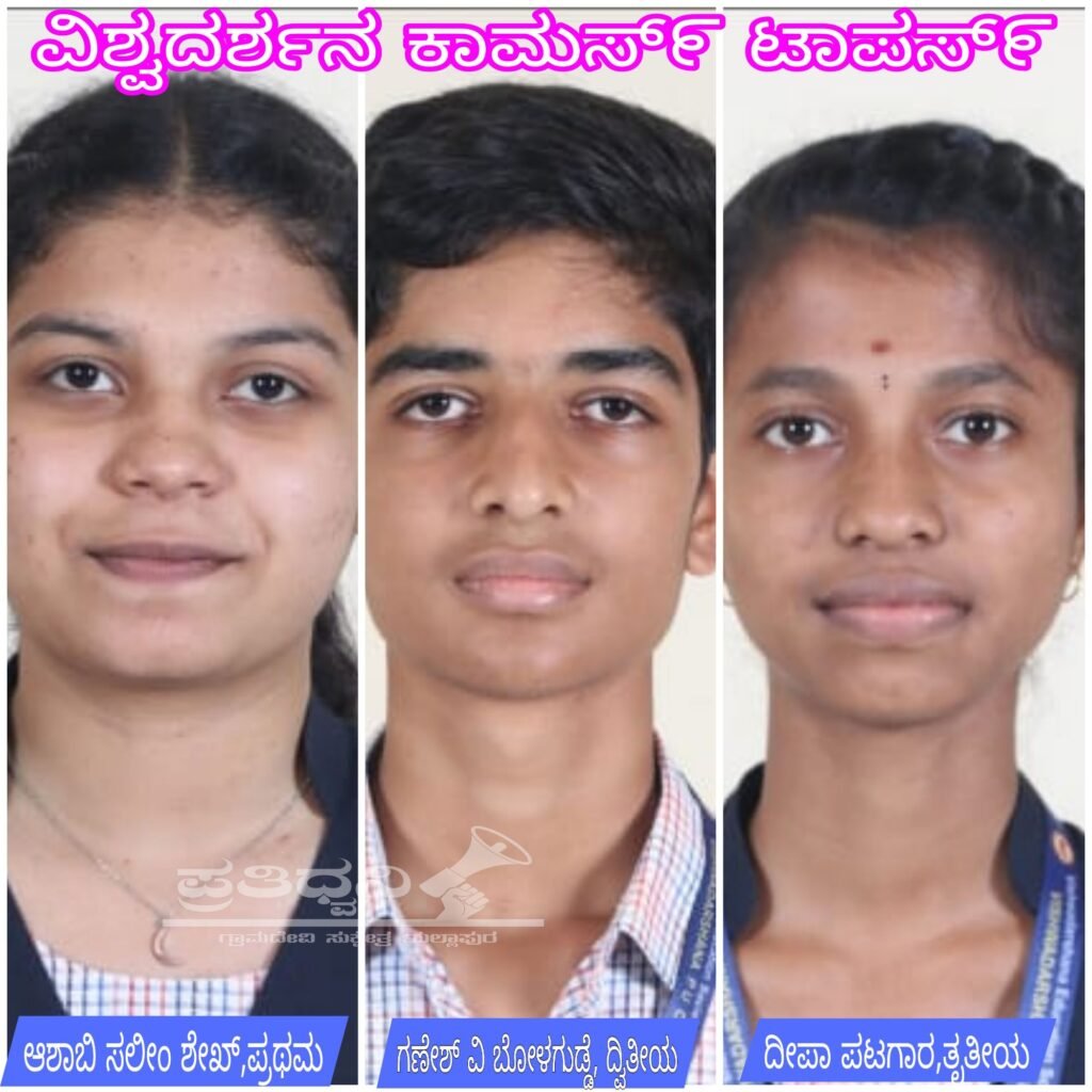 ವಾಣಿಜ್ಯ ವಿಭಾಗದಲ್ಲಿ ಆಶಾಬಿ ಸಲೀಂ ಶೇಖ್ 98.3% ಅಂಕಗಳೊಂದಿಗೆ ಪ್ರಥಮ ಸ್ಥಾನ, ಶ್ರೀಗಣೇಶ ವಿ. ಬೋಳಗುಡ್ಡೆ 98% ಅಂಕಗಳೊಂದಿಗೆ ದ್ವಿತೀಯ ಸ್ಥಾನ ಹಾಗೂ ದೀಪಾ ಪಟಗಾರ್ 97.6% ಅಂಕಗಳೊಂದಿಗೆ ತೃತೀಯ ಸ್ಥಾನ ಗಳಿಸಿದ್ದಾರೆ.